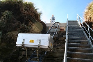 Lösungen für höchste Ansprüche an Mensch und MaschineBei diesem spezielen Projekt ist der Standort in der Nähe des südlichen Polarkreises mit schwierigsten Umweltbedingungen. Die Fahrbahn des Lastenliftes steht, aufgrund gezeitenabhängigen Tideschwankungen des Meeres, bis zu 80 cm im Wasser.